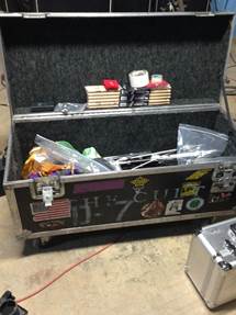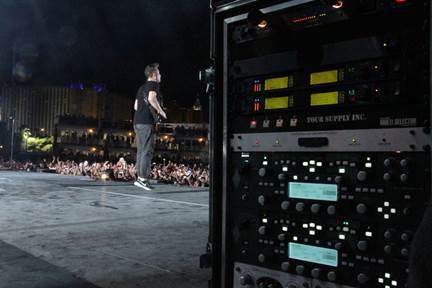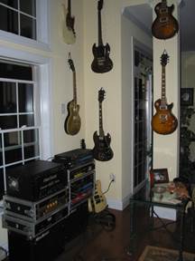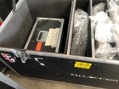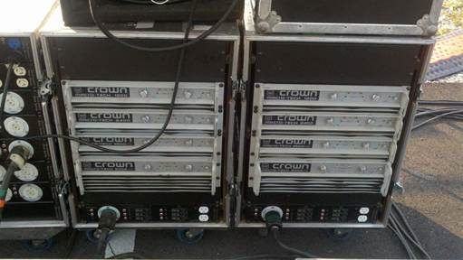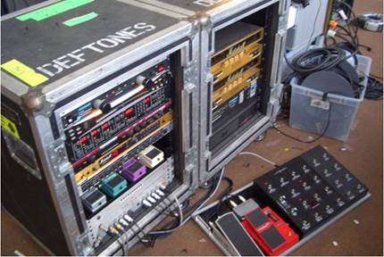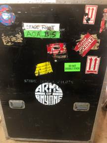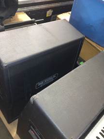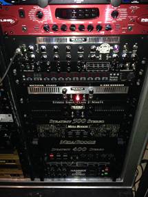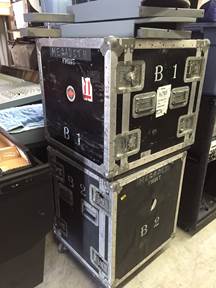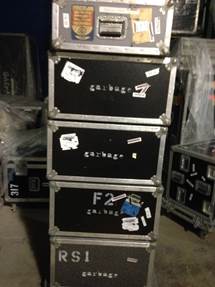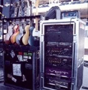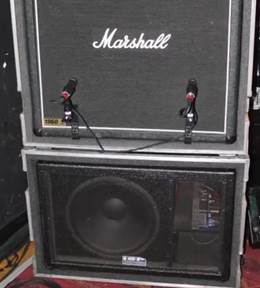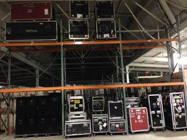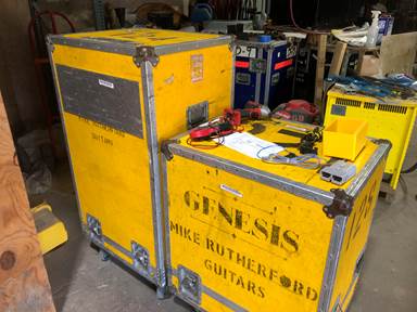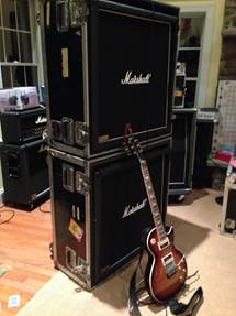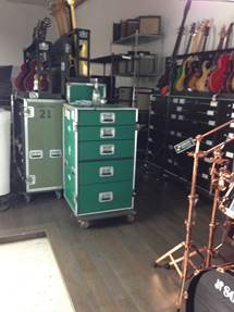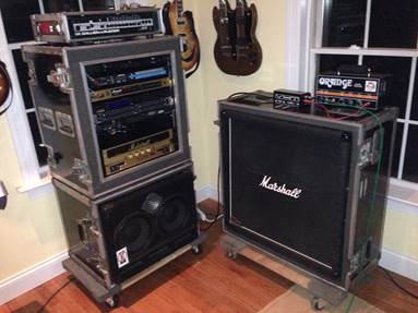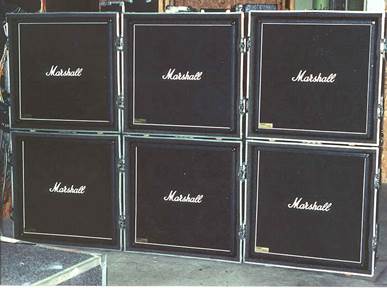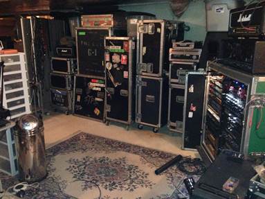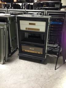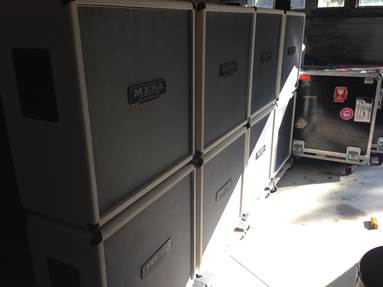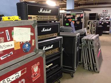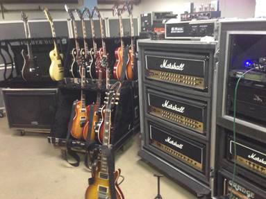 Marshall 4x12’s, Eden bass cabinets, guitar vault, etc.