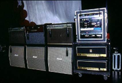 Marshall 4x12’s, Eden bass cabinets, guitar vault, etc.